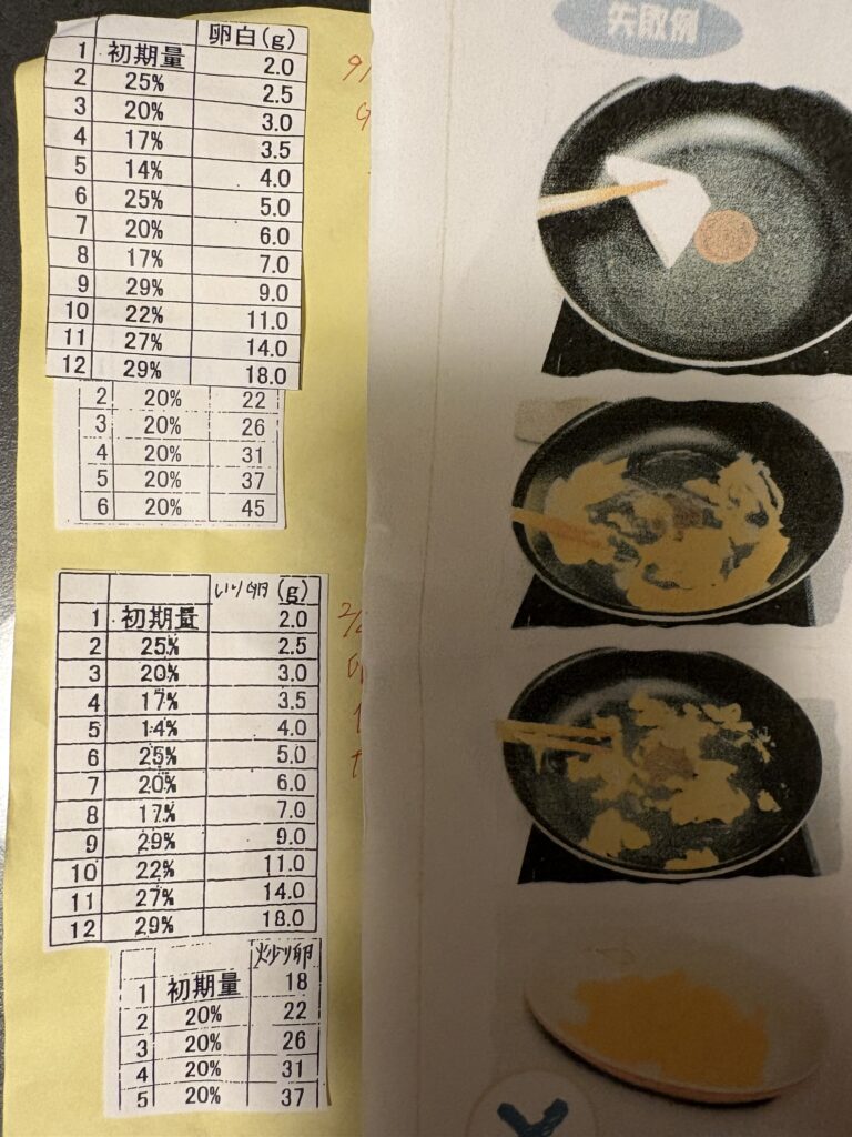 現在は卵白のみの炒り卵。2.0gから1回ずつ摂取。